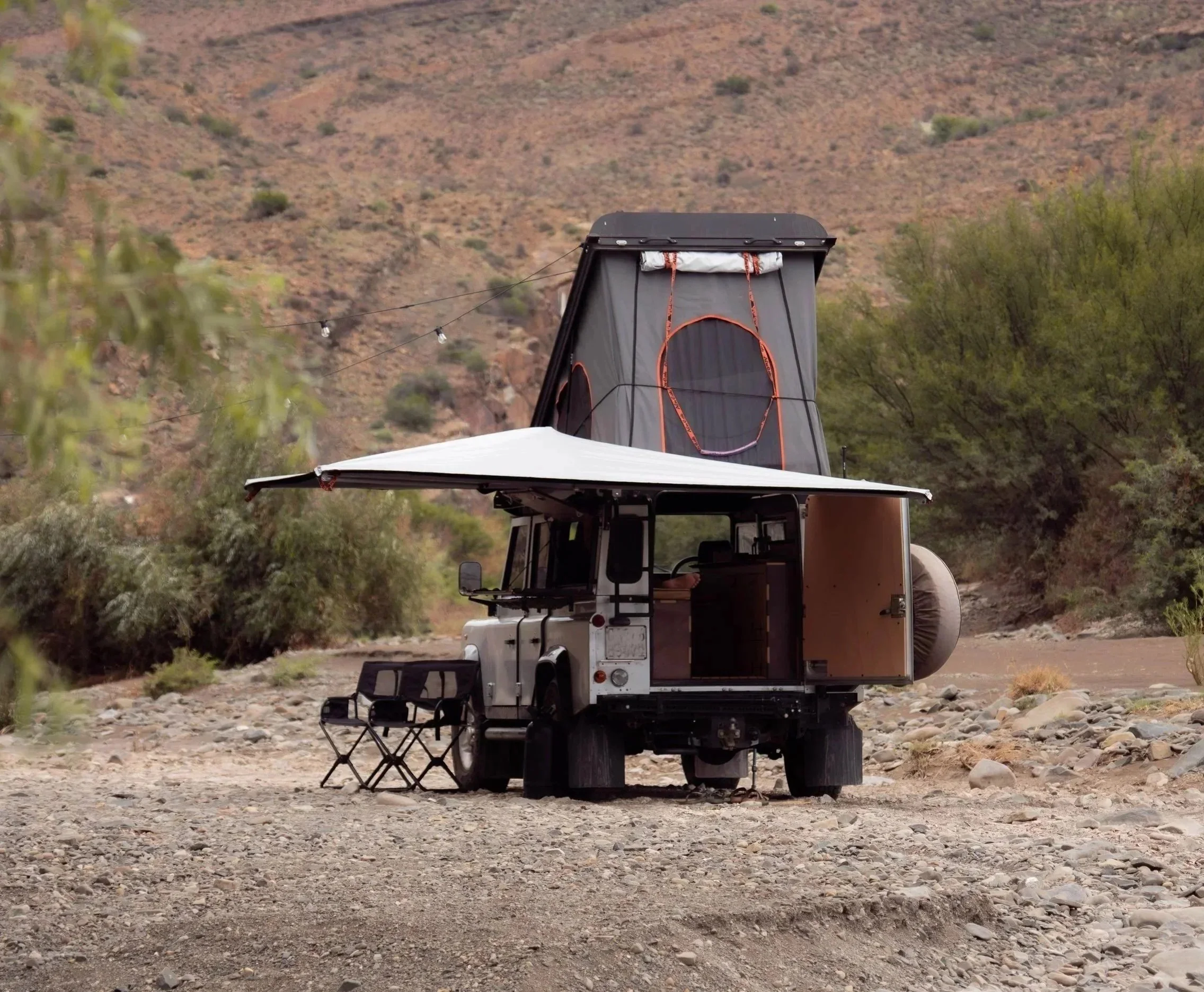 Le campement devient un prolongement naturel de votre Defender, pensé pour la simplicité, l’efficacité et l’intimité.